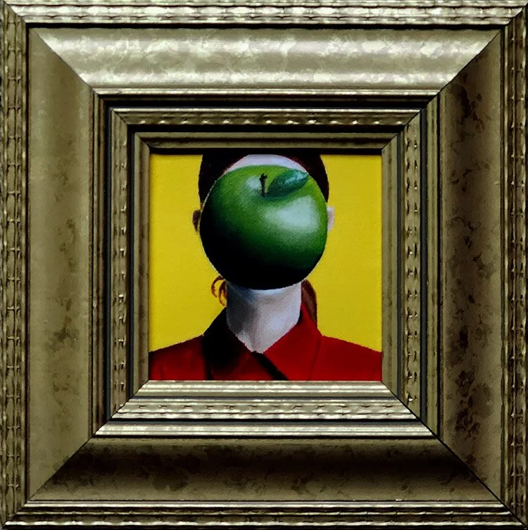 Homage to Magritte No. 3oil on panel4x4” (framed size 8x8”)purchase here Apple on a White Plate No. 1oil on canvas4x6” (framed size is 7 1/2 x 9 1/2”)purchase here